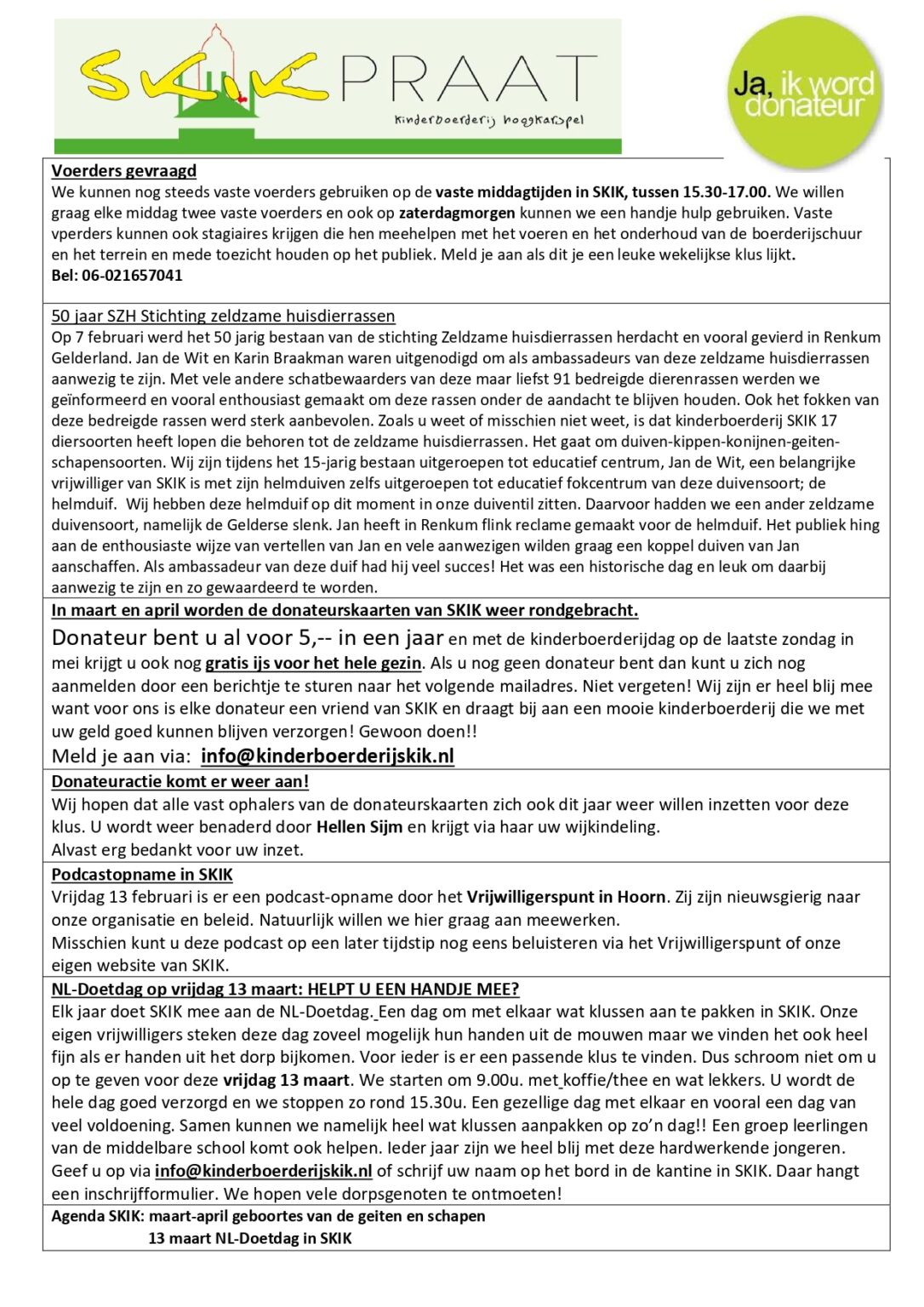 Voerders gevraagd; 50 jaar Stichting Zeldzame huisdierrassen; Opname Podcast; Donateursactie; NL-Doetdag 13 maart